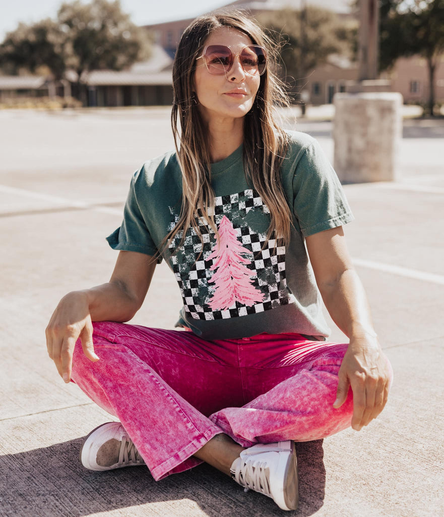 Red Sweatshirt {WATERCOLOR GLITTER PAINTED CHRISTMAS TREE} Crew Neck Sweatshirt