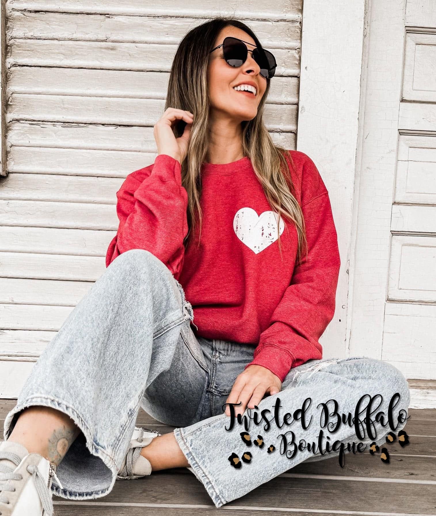 Heather Red Sweatshirt {POCKET HEART} Red Sweatshirt - S is backordered and will ship as soon as it is back in stock.