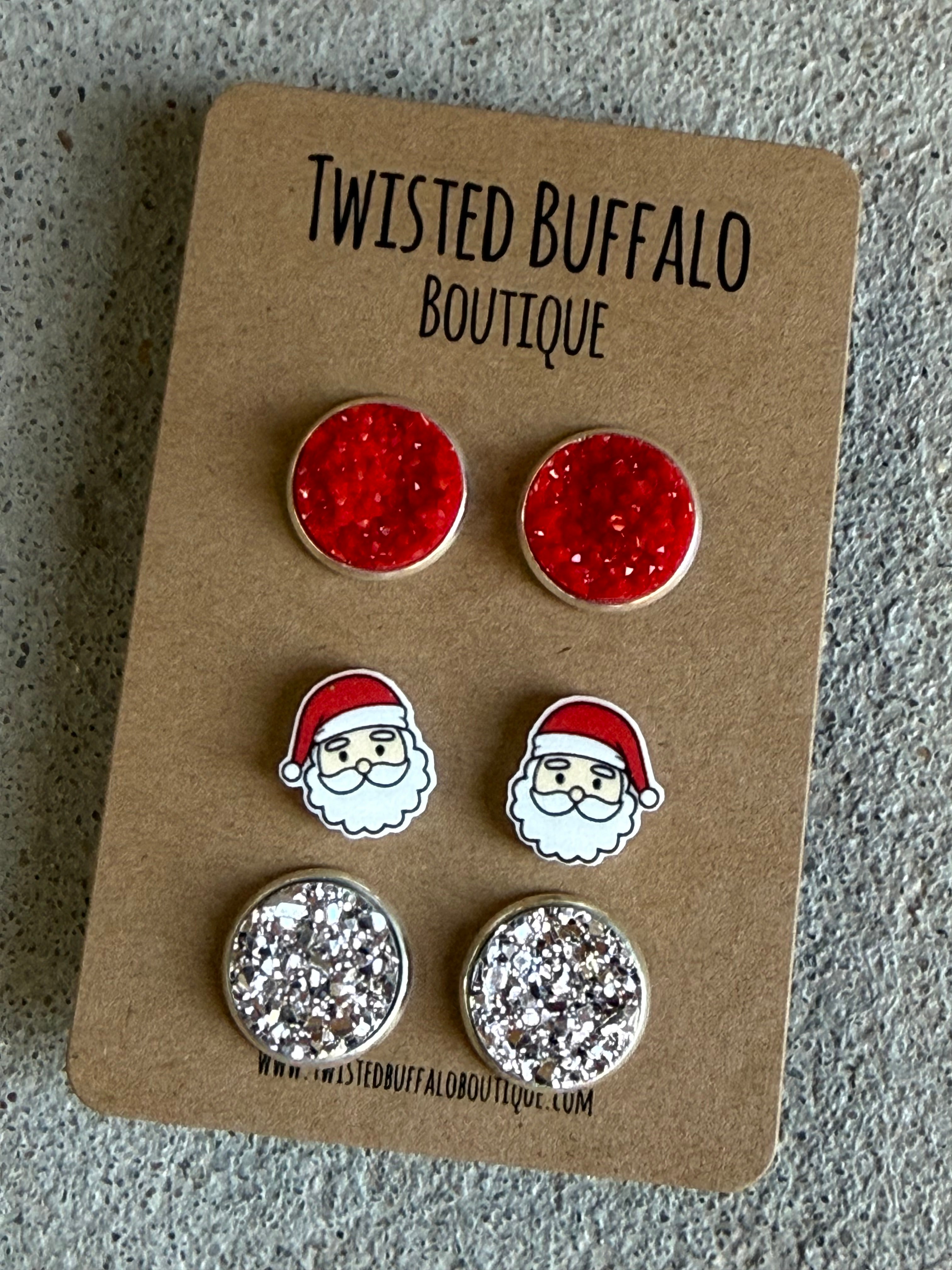 Santa… He’s My Favorite! Druzy 12mm Earrings Set