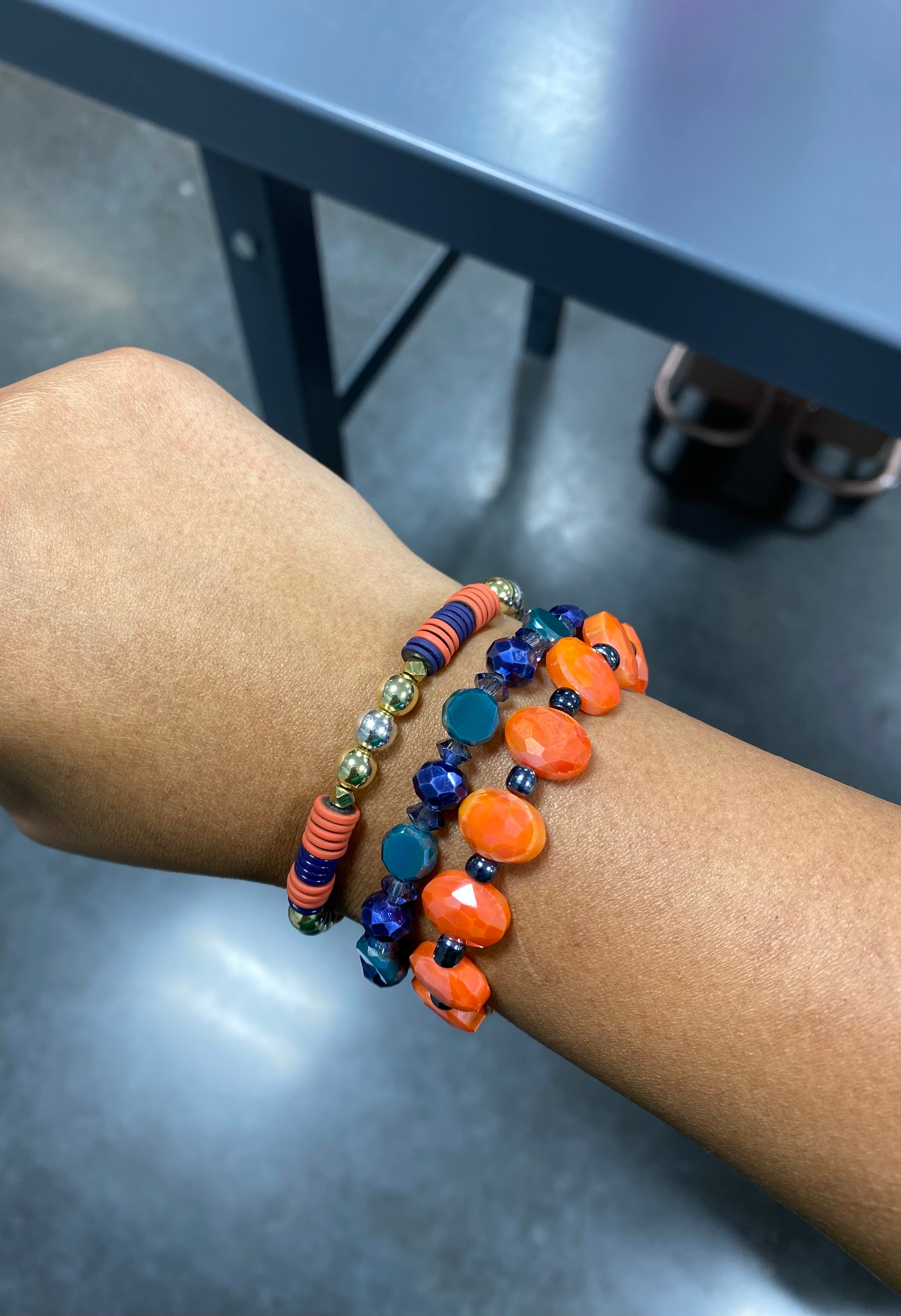 You'll receive three beautiful Erimish bracelets that can be worn together as shown and coordinate with our AUGUST Mystery Shirt or separately to make your own stack.