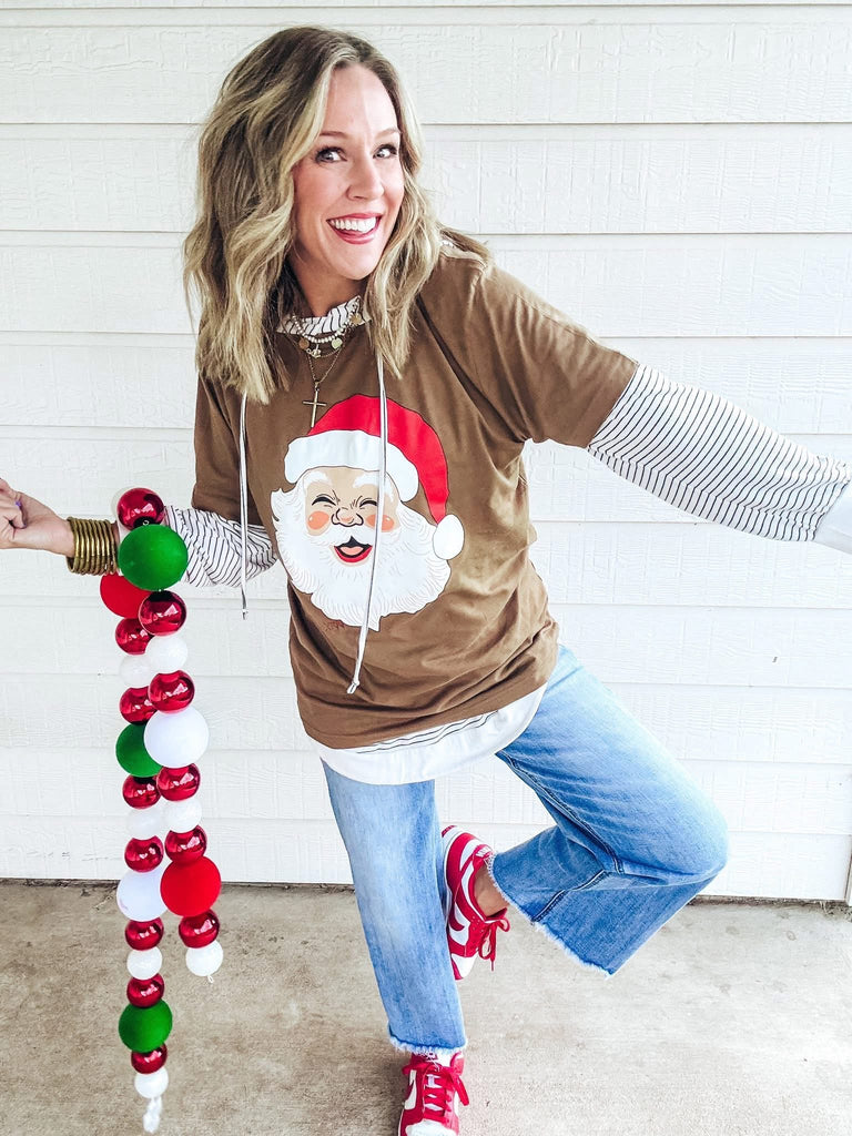 {SANTA... SMILING IS HIS FAVORITE} Coyote Brown Crew Neck Tee