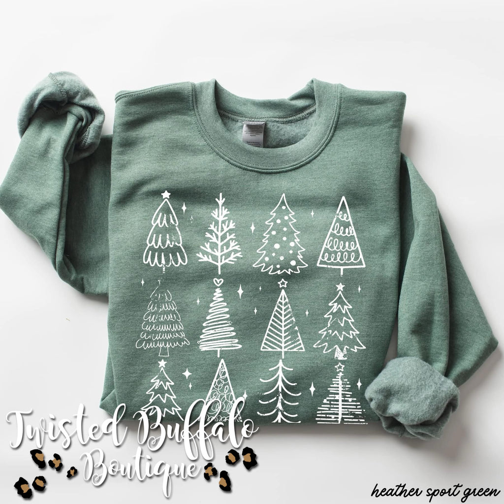 Green Sweatshirt {CUTE CHRISTMAS TREES} Green Crew Neck Sweatshirt