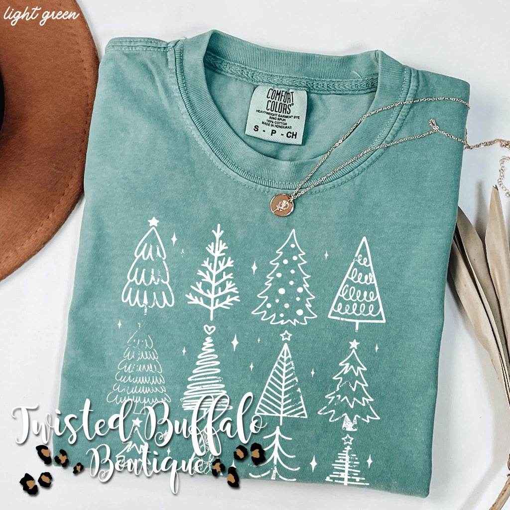 Green {CUTE CHRISTMAS TREES} Green Crew Neck Tee
