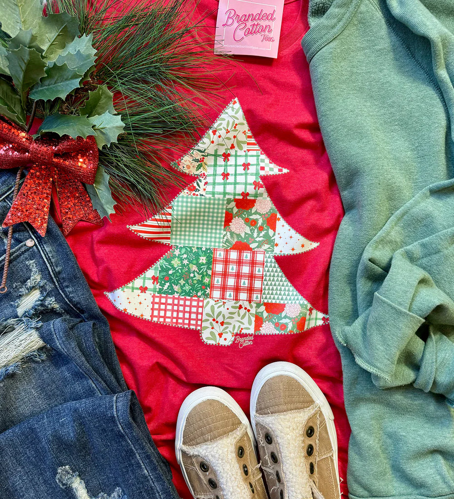{PATCHWORK TREE} Christmas Red Crew Neck Tee