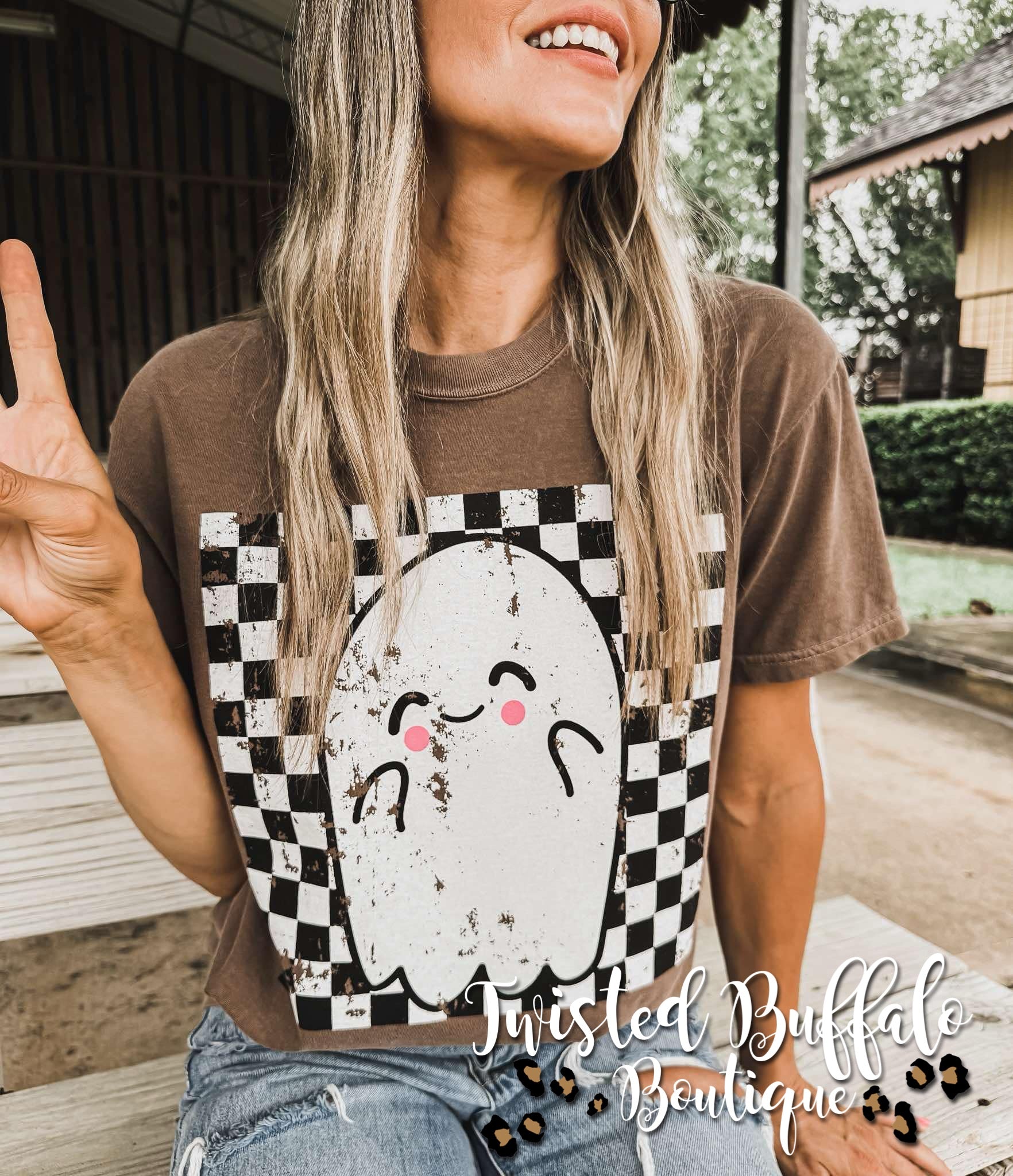 {CHECKERED GHOST} Espresso Brown Crew Neck Tee - S is backordered and will ship as soon as it is back in stock.