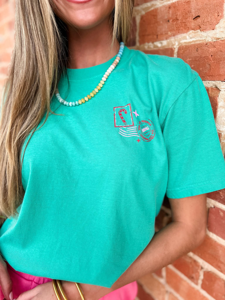 {SANTA'S STAMP OF APPROVAL} Caribbean Green Crew Neck Tee - M is backordered and will ship as soon as it is back in stock.